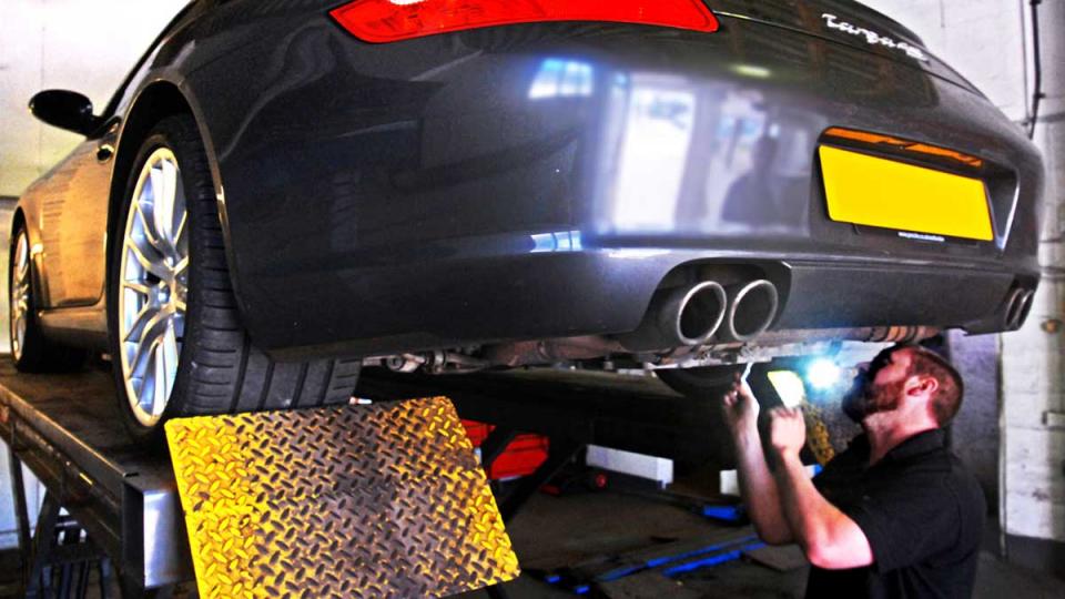 Have you checked your 997 Engine Tandem pump for a rusty cover? Check yours: The pump is situated on the back of the engine on the right hand side (offside), and can be seen by looking up from under the rear bumper. Changing a rusty oil pump is essential - a perforated pump casing will allow pressure and oil to leak. A replacement tandem oil pump requires the removal of the exhaust... If the exhaust fasteners, nuts and bolts have corroded, the time to remove will be extended due to the need to extract the studs with heat.